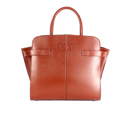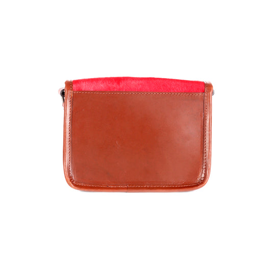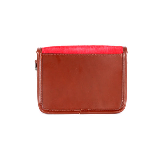 Triton Brown Leather Satchel with Hair-On Red Flap