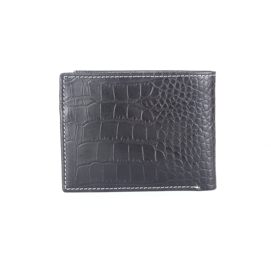 Black Croco Effect Bifold RFID Protected Genuine Leather Wallet